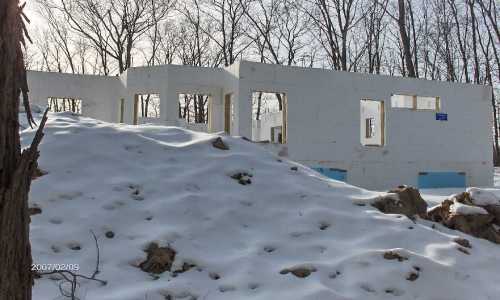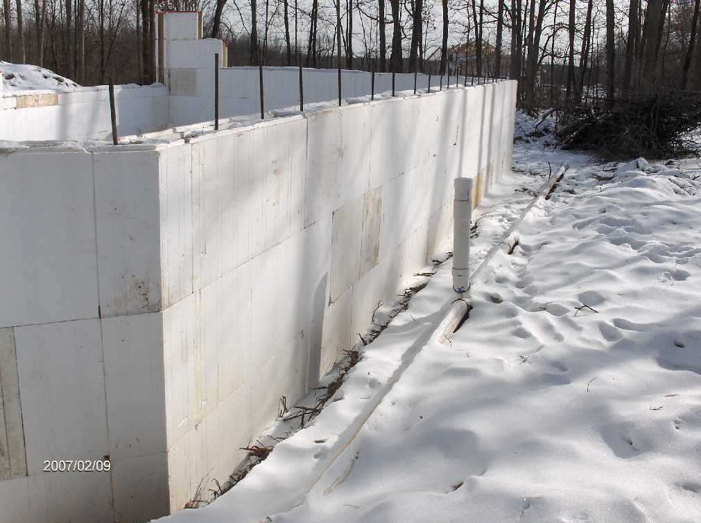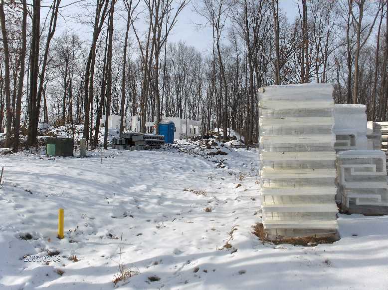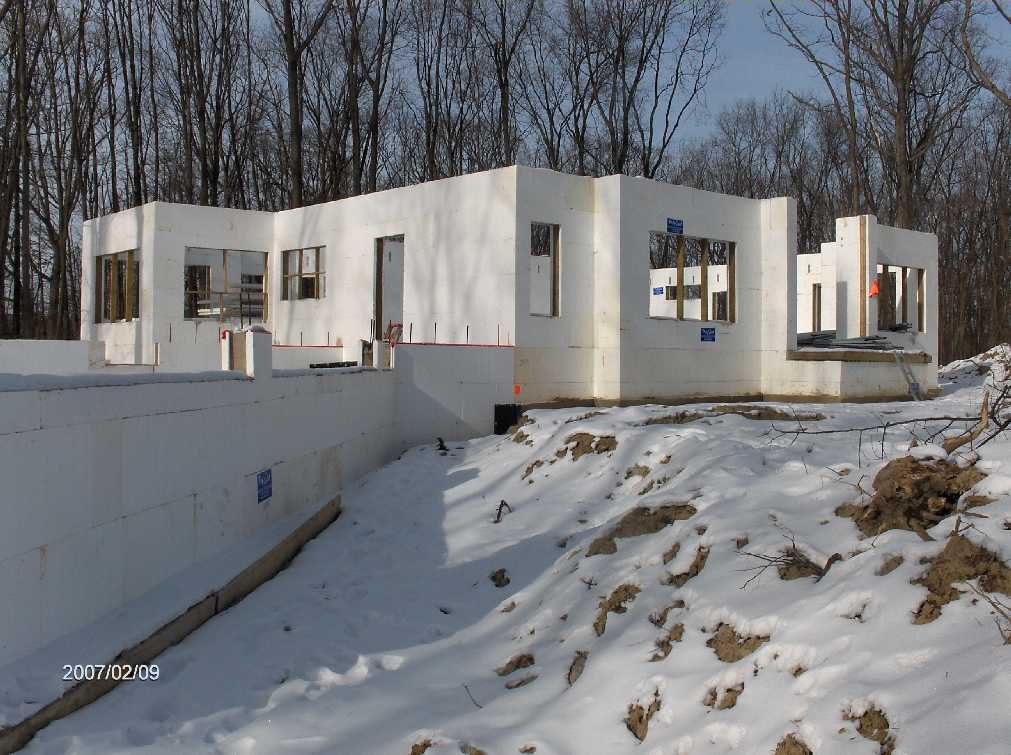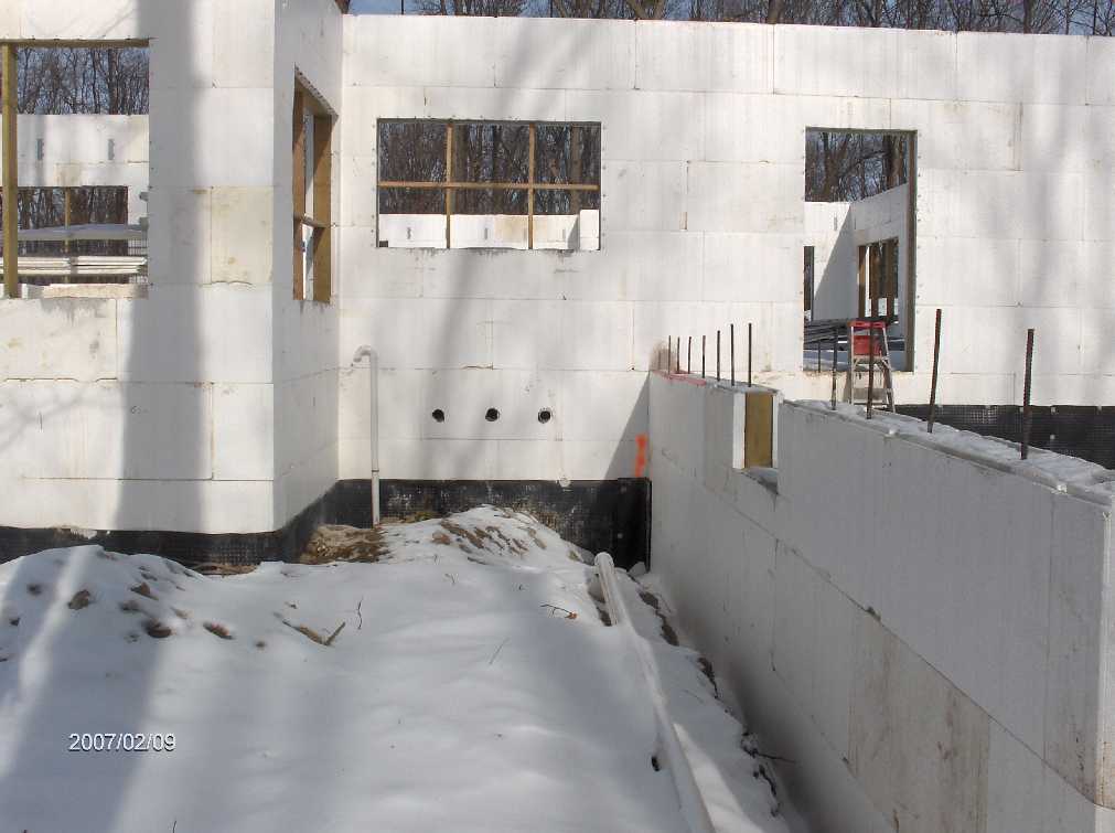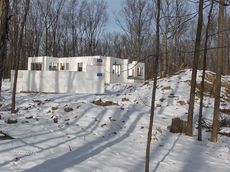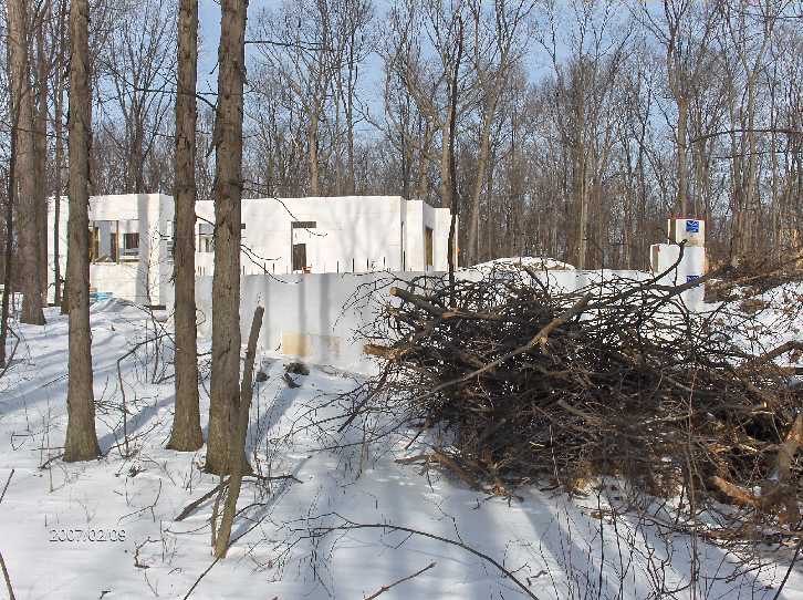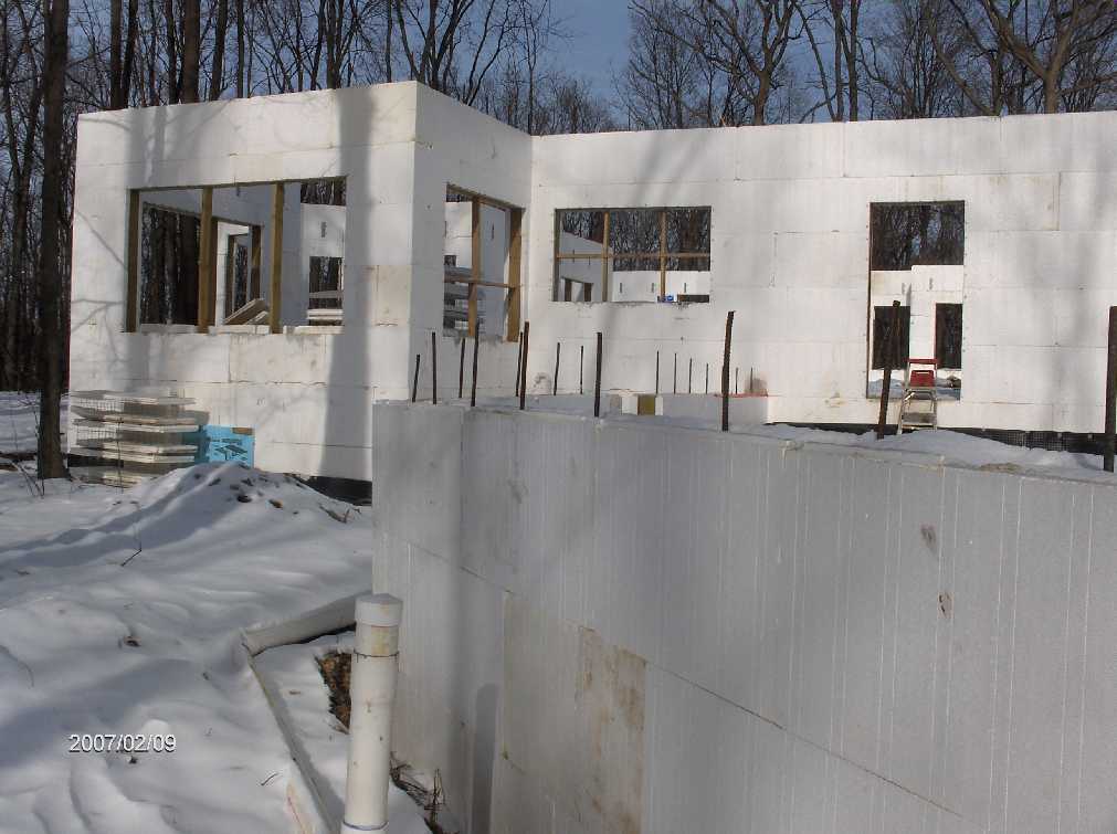 The house has concrete footings with Form-A-Drain on both inside and outside for the basement walls. The Garage walls have a trench footing. The wall footings were installed by Dave Dotson of Steel Beam Inc. The walls are PolySteel ICF block of 11" overall thickness with 6" cavity. The ICF wall construction is also by Dave Dotson. As of Feb-09-2007, the basement walls and the Garage ICF walls are up. The original house plans were for stick-wall construction. Mike Tozer of hmTozerDESIGN L.L.C. had also worked on the house drawings. The Northfield Township Building Official had some questions regarding the changes to the house, and the adequacy of the wall footings for part of the house with two storys over the basement. I have conducted a field inspection to check the adequacy of the foundation and the status of construction. Today, I submitted a new set of sealed drawings to the Building Department. I will be in touch with the Building Department to facilitate resolution of any outstanding concerns. In the following, I present some pictures of the house as of Feb-09-2007. Picture 1 ... New-ICF-House-in-Northfield-Twp-Michigan ![]() ANAND Enterprises project New-ICF-House-in-Northfield-Twp-Michigan Picture 2 ... New-ICF-House-in-Northfield-Twp-Michigan ![]() ANAND Enterprises project New-ICF-House-in-Northfield-Twp-Michigan Picture 3 ... New-ICF-House-in-Northfield-Twp-Michigan ![]() ANAND Enterprises project New-ICF-House-in-Northfield-Twp-Michigan Picture 4 ... New-ICF-House-in-Northfield-Twp-Michigan ![]() ANAND Enterprises project New-ICF-House-in-Northfield-Twp-Michigan Picture 5 ... New-ICF-House-in-Northfield-Twp-Michigan ![]() ANAND Enterprises project New-ICF-House-in-Northfield-Twp-Michigan Picture 6 ... New-ICF-House-in-Northfield-Twp-Michigan ![]() ANAND Enterprises project New-ICF-House-in-Northfield-Twp-Michigan Picture 7 ... New-ICF-House-in-Northfield-Twp-Michigan ![]() ANAND Enterprises project New-ICF-House-in-Northfield-Twp-Michigan Picture 8 ... New-ICF-House-in-Northfield-Twp-Michigan ![]() ANAND Enterprises project New-ICF-House-in-Northfield-Twp-Michigan Picture 9 ... New-ICF-House-in-Northfield-Twp-Michigan ![]() ANAND Enterprises project New-ICF-House-in-Northfield-Twp-Michigan Picture 10 ... New-ICF-House-in-Northfield-Twp-Michigan ![]() ANAND Enterprises project New-ICF-House-in-Northfield-Twp-Michigan Picture 11 ... New-ICF-House-in-Northfield-Twp-Michigan ![]() ANAND Enterprises project New-ICF-House-in-Northfield-Twp-Michigan Picture 12 ... New-ICF-House-in-Northfield-Twp-Michigan ![]() ANAND Enterprises project New-ICF-House-in-Northfield-Twp-Michigan Picture 13 ... New-ICF-House-in-Northfield-Twp-Michigan ![]() ANAND Enterprises project New-ICF-House-in-Northfield-Twp-Michigan Picture 14 ... New-ICF-House-in-Northfield-Twp-Michigan ![]() ANAND Enterprises project New-ICF-House-in-Northfield-Twp-Michigan Picture 15 ... New-ICF-House-in-Northfield-Twp-Michigan ![]() ANAND Enterprises project New-ICF-House-in-Northfield-Twp-Michigan Picture 16 ... New-ICF-House-in-Northfield-Twp-Michigan ![]() ANAND Enterprises project New-ICF-House-in-Northfield-Twp-Michigan beginning of New-ICF-House-in-Northfield-Twp-Michigan back to our Energy Efficient Building Network home page