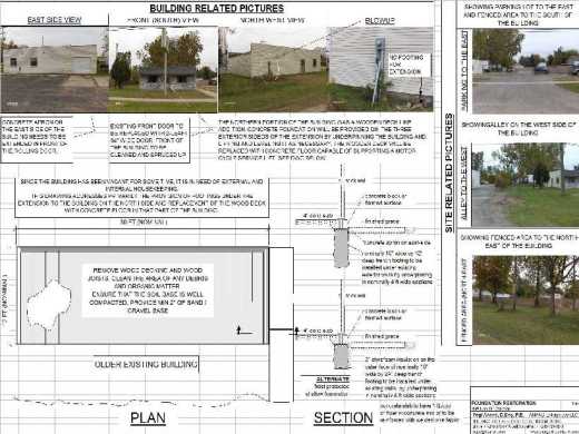 The part of the building to the North had no permanent foundation -- that part of the building was built without any building permit. In the following drawing, among other things I document details of the needed corrective action to restore the structural integrity of the building so that after implementing the needed fixes, the owners can get an occupancy permit.